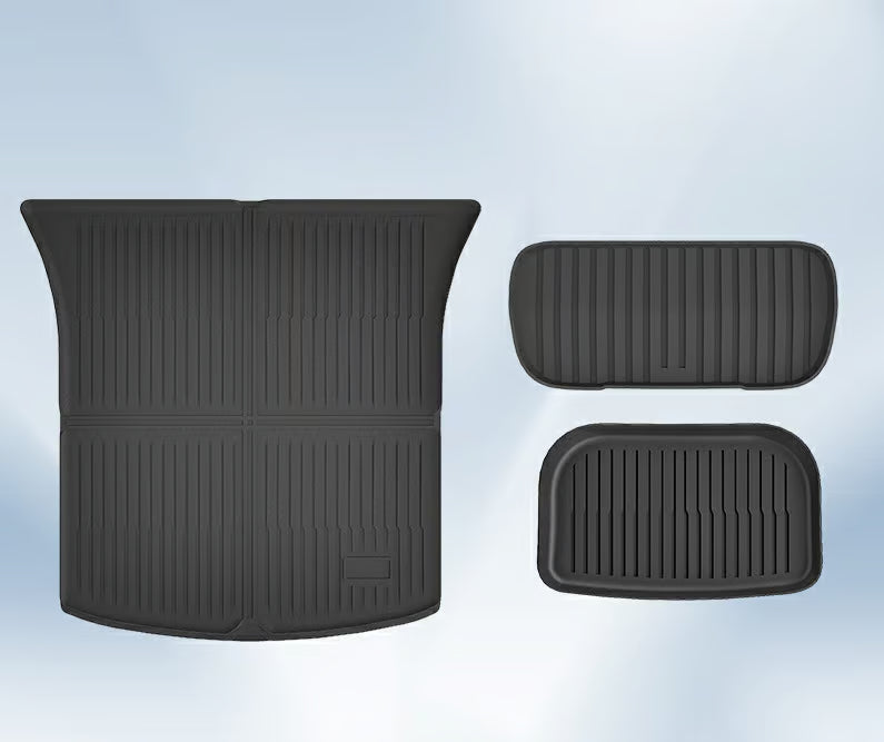 We use odorless TPE, not the PVC rubber that smells like a tire factory. Your Tesla is a tech product. Your floor mats should be too.